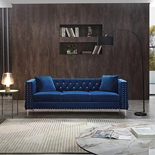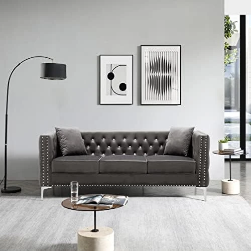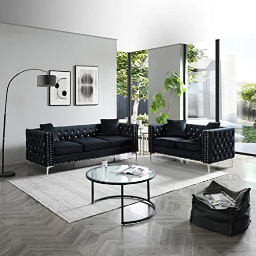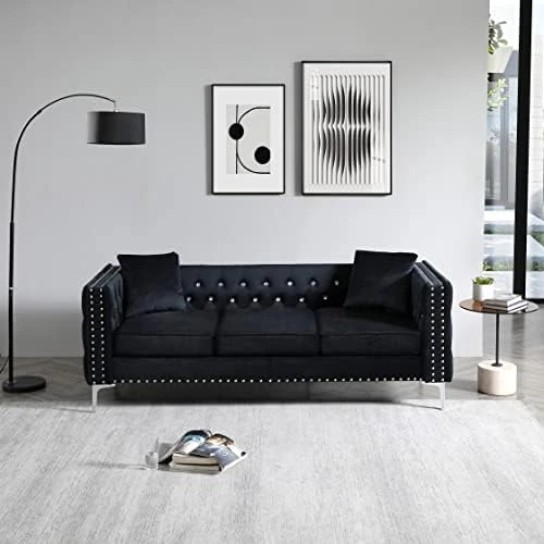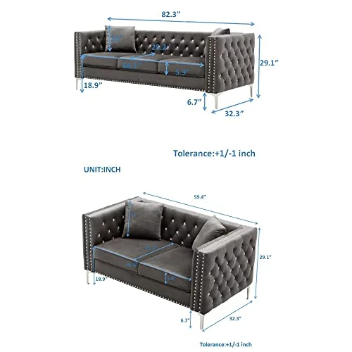 - 【Sofa Dimensions】2-seater Sofa Dimension: 59.4”(W) x 32.3”(D) x 29.1”(H), 3-seater Sofa Dimension: 82.3”(W) x 32.3”(D) x 29.1”(H),available in Gray, Blue and Black velvet color options. Easy to assemble with clear instruction.