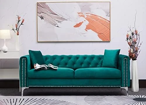 - 【Stylish Style】The design fully considers the current popular furniture elements, tufted on the outside and inside of the arms and backs creates a casual yet modern vibe. jeweled buttoned and silver nailhead trimmed are suitable for home fashion elements.