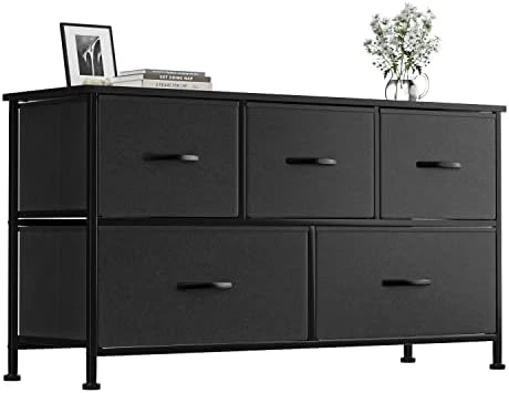 - 【Large storage space】Features 5 removable drawers, add up to a total of 140lbs of storage, you can put books, clothes, toys and other household items; Wooden table tops also provide plenty of space for decorative items or sundries.
