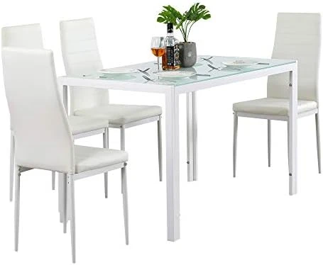 - 【What You Get】 -The Fashion Rectangle Tempered Glass Dining Table Set Package Includes:1 x Dining Table,4 x Dining Chairs,1 x Assembly Instruction,1 x Assembly Tool