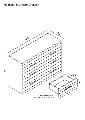- Durable Material: The Galano Hamsper 6 Drawer Dresser is constructed using solid engineered wood board, which helps to enhance the sturdiness and durability of the dresser.
