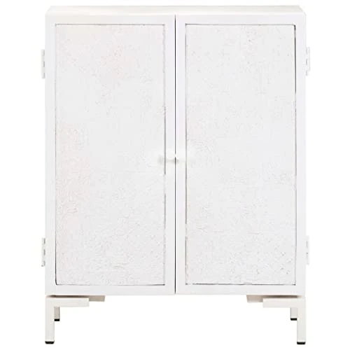 - Material Info: Solid mango wood, powder-coated iron. Assembly required: Yes. WARNING: In order to prevent overturning, this product must be used with the wall attachment device provided. Design/Look : Modern & Contemporary. Material : Wood. Finish : Wood Finish. Assembly : Assembly Required. Color : White. Storage type : Cabinets. Product Size: 1.0 In. W X 1.0 In. H X 1.0 In