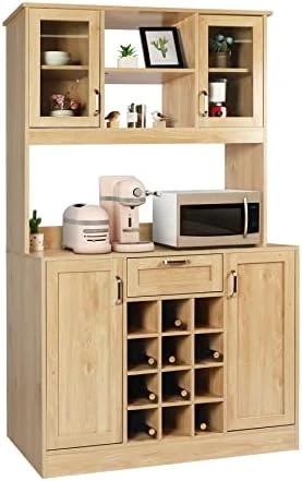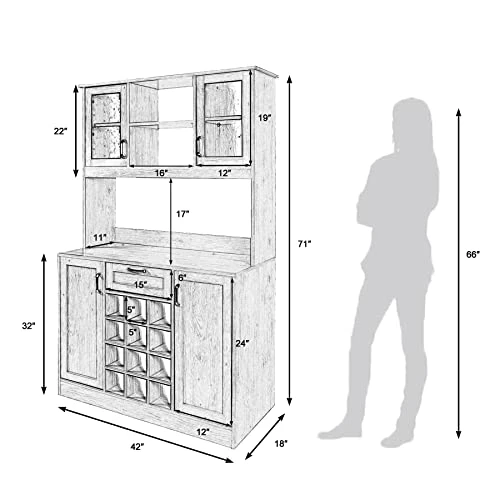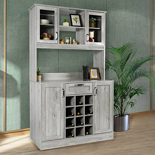 - ✅【Large Wine Rack Storage】->>The kitchen sideboard is equipped with a 12-bottle wine compartment, which provides users with enough space to store wine and other wine bottles. Make full use of the limited space, which greatly facilitates your storage of items. The size of each wine rack: 5″ (L) X 5″ (W), which provides complete stable support and good protection for the wine.
