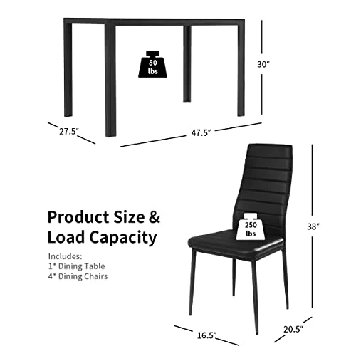 - 🍲【Easy Clean for Padded Leather Chairs】The 4 chairs have padded leather on the seat and back part, beautifully furnished black color, which can let you have enjoyable sit feeling. Whatmore, the faux leather is easily for daily clean.