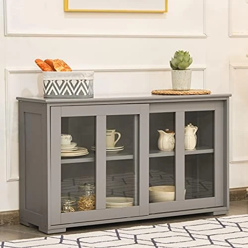 - 『Spacious Tabletop & Large Storage Space』: Tabletop is spacious for placing or displaying.2-tier cabinet is big enough to serve as a pantry cupboard in dining room and kitchen.