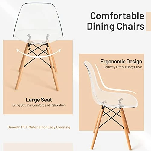 - 🍞 [ Ergonomics Design ] – These dining chairs feature transparent seats with smooth lines, which make them look special than other common kitchen chairs. At the same time, the mid-century modern design blends seamless with your home decoration, so you can use them in your dining room, living room and bedroom, etc.