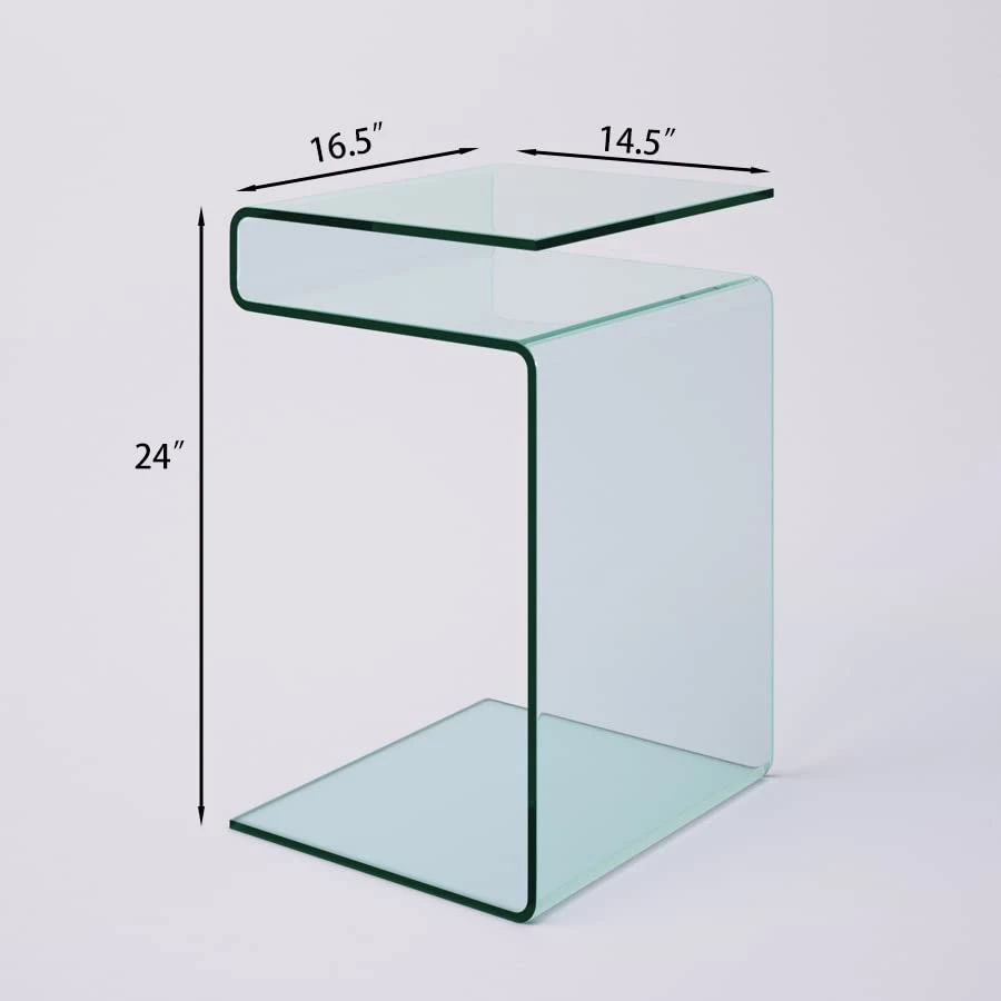 - 👉 MINIMALISM DESIGN: This all clear S-shaped modern design small end table, is ideal for your bedroom, den, and porch,and it goes well with any other living room furniture.