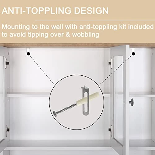 - UPGRADED METAL HINGES FOR CABINET – Kitchen pantry storage cabinet with upgraded metal hinges ensure to be slightly adjusted when assembling to make two In daily use, upgraded hinges are flexible while opening or closing microwave cabinet with storage and drawers.