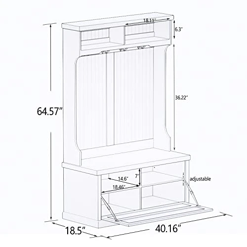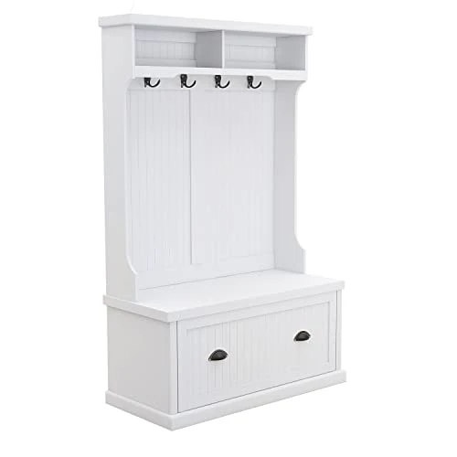 - CLASSICAL SIMPLE IN DESIGN – Hall tree with a storage cabinet, finished with white color, go with all kinds of home styles, sit on the bench for easy wear shoes.