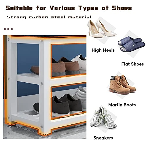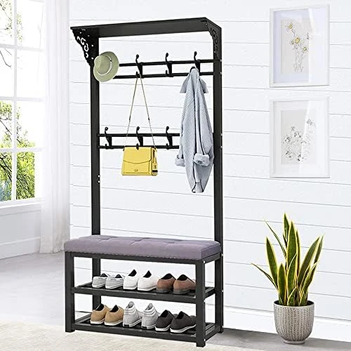 - 【4-IN-1 ORGANIZER】A perfect combo of shelf, coat rack and shoe storage bench; You can hang handbag, scarf, hat, umbrella, cap and more, and the bottom 2 tier storage shelf can store your shoes and storage basket; It will store many things in limited space.