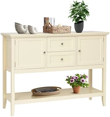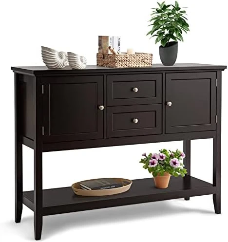 - Simple & Elegant Appearance: Featuring simple lines and wood structure, this sideboard not only blends well with any home styles, but also creates an elegant atmosphere in your home. Additionally, the exquisite metal knobs increase a sleek and charming flavor while bringing you much convenience for opening and closing doors.