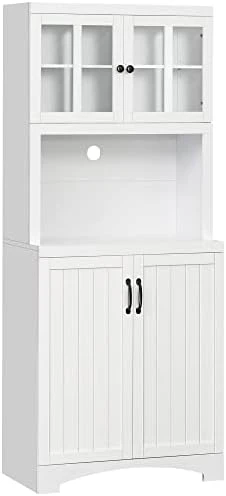 - Make a Statement: If you spend a lot of time in the kitchen, you want a beautiful piece that you enjoy looking at and matches the theme in your home. With pure color, this hutch for kitchen storage features beadboard door panels and framed glass doors,suitable for your modern to farmhouse style kitchen, dining room, and living room.