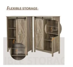 - Sturdy & Stable: With its combination of particleboard, steel, and glass doors, this living room cabinet is easy to clean. Of course, your home should be a secure place for the family member. That is why an anti-tipping strap is included so that you can attach the storage unit to the wall.