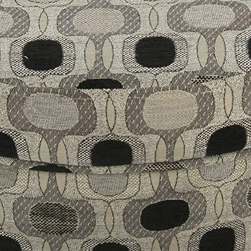 - STORAGE OTTOMAN: Created with premium soft and durable woven fabric our Round Ottoman with Storage in a Black Geometric Pattern offers a timeless style | Perfectly completed with tapered wood legs in a light cherry finish
