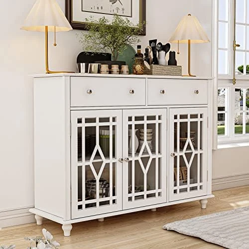 - 【Multi-Purpose Use】 This sideboard cabinet with shelves is versatile, you can use it as buffet & sideboard cabinet, display & curio cabinet, file cabinet, console table, cupboard, TV stand and more. It is ideal for kitchen, entryway, living room, dining room, hallway, bedroom, office, restaurant, etc