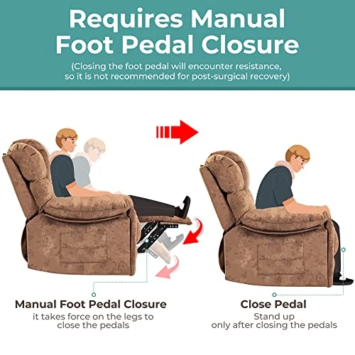 - ROCKING & RECLINING – The footrest of this swivel recliner is not electrically unfolded but unfolded by the side pull ring, closing the footrest will encounter some resistance, so it is not recommended for post-surgical recovery use. This rocking recliner has a 360-degree swivel and a 145-degree reclining function for casually sitting or reclining in the chair.