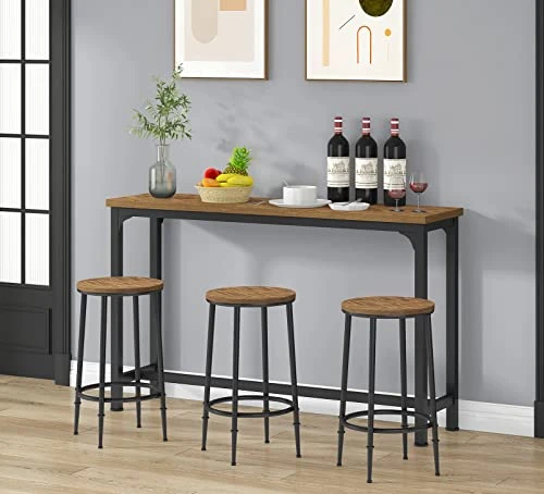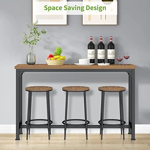 - [Space-saving Design]-The 3 stools can be neatly moved into the bottom of the table when not in use. The dining table set won’t occupy too much space. Table size: 59″ (L) x 15.4″ (W) x 35.8″ (H), chiars size: 16.7″ (L) x 16.7″ (W) x 26.4″ (H)