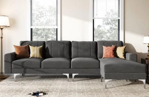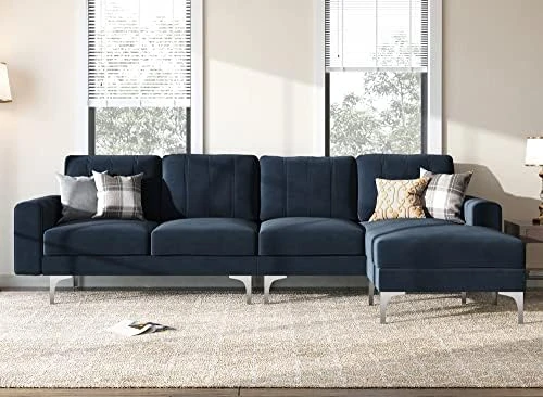 - 【Reversible Chaise】The chaise can be placed facing the left or right side of the 4-seat sofa, which perfect for apartments, offices, living rooms, or small spaces.