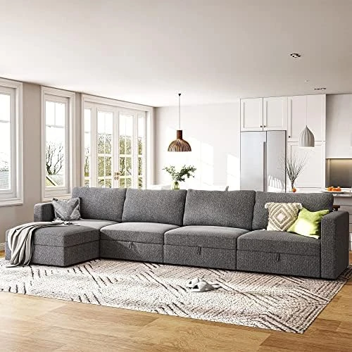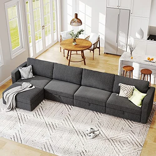 - 【Large Size & Space】 The overall size of the modular sofa :149 “W x 62.8” D x 36.3 “H, the size of storage space under each seat is: 29.9”W*24.4”D*7.1”H.The 11 packages of the modular sofa will take 3-7 business days to arrive.