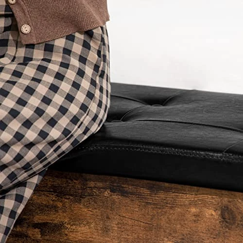 - A Piece of Art: Your friends and every visitor in your home will be impressed by this attractive shoe benchclassic black synthetic leather, wooden board in retro design, all together, is what we offer youa piece of art, not just a storage bench