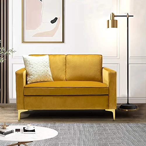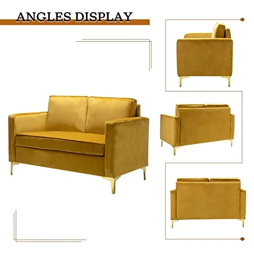 - 🛋【MULTIFUNCTIONAL USE】The smooth and simple lines of the sofa combined with the gold metal legs make the sofa modern and minimalist. This modern loveseat is suitable for various scenarios like living room, bedroom, office, apartment, etc. It is a perfect addition for your home decor.