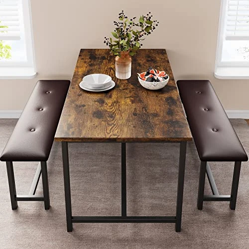 - DURABLE & STURDY FRAME: This kitchen table set with benches, offers a longer service life and more excellent stability. With the premium MDF Board top, the overall durability would be significantly increased.