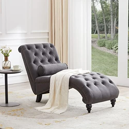- 【Thicker Upholstery】The backrest and seat cushion are filled with high-density sponge, which provides good cushioning. Covered with high-quality linen fabric, skin-friendly and durable, suitable for children and pets, safe and secure. It’s a great idea to use chaise lounge indoor bedroom to watch TV, hang out with friends, read books or take a nap. When you touch our upholstered chaise longue after a long day at work, fatigue dissipates, enjoy complete relaxation, a sweet dream is coming!