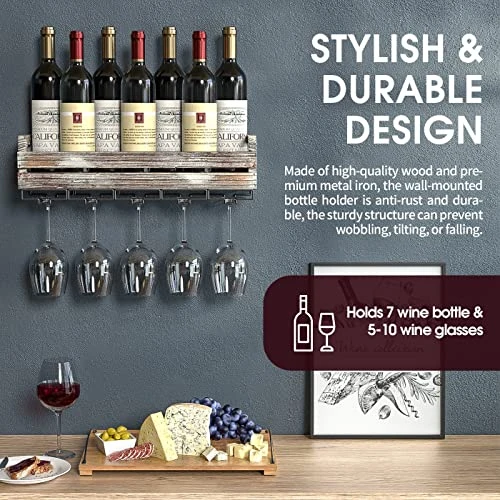- [STYLISH & DURABLE DESIGN] – Made of high-quality wood and premium metal iron, the wall-mounted bottle holder is anti-rust and durable, the sturdy structure can prevent wobbling, tilting, or falling.