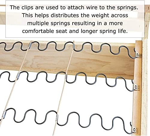 - PROFESSIONAL : These stay wire clips are the exact same clips that are being used in furniture manufacturing throughout the country. Regardless of whether you are building a new chair or need replacement wire to re-connect the springs together on your sofa, this wire kit comes with every supply you need to achieve a professional upholstery result