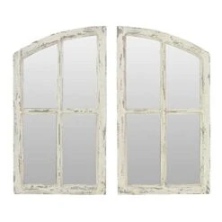 Glitzhome 40″ H Cathedral Arched Windowpane Wall Mirror Window Frame, Black