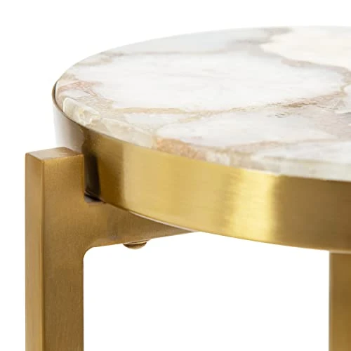 - PRECIOUS STONE: The Aguilar drink table is crafted in India with a precious quartz tabletop and an iron frame, the stone featuring unique veining that is distinct from piece to piece