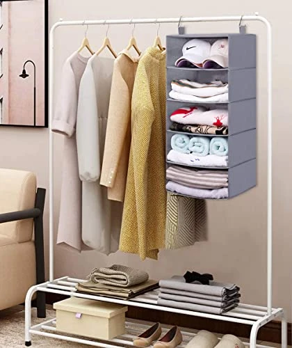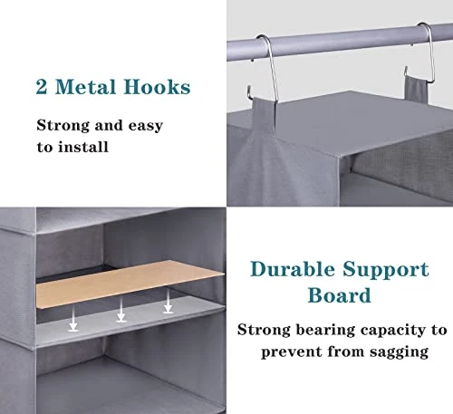 - Space Saver: Made of high quality fabric of the closet hanging shelves, durable and not easy to be teared. Collapsible design makes hanging closet shelf convenient to carry, just simply put away while not use;