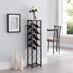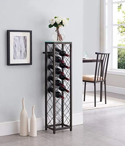 - The Narenda Wine Rack is constructed of a sturdy metal frame in a refined pewter finish with cross wiring giving space for 13 wine bottles.