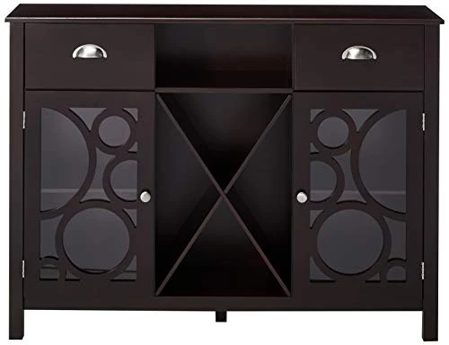 - Crafted of manufactured wood, this clean-lined design is finished in glossy dark cherry for a stately look that beautifully blends right into your abode.
