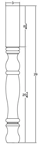 Highland Manor Wood Products Narrow Square Bedford Dining Table Leg – 29″ Tall X 3″ Wide (Red Oak)