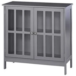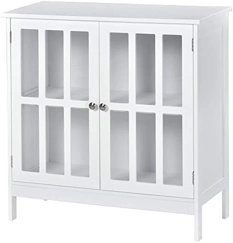 - AMPLE STORAGE SPACE: With a two-tier shelf, this kitchen cupboard gives you plenty of storage. The transparent acrylic-paneled doors make it easy for you to find items, while the handles allow for easy opening and closing.