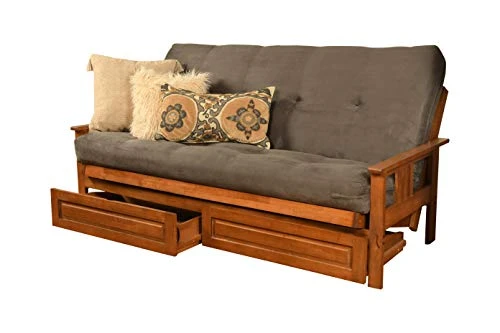 The Monterey futon features a classic hardwood frame with Mission style arms. This unique and versatile full-size futon sofa easily converts to a bed. This multifunctional piece of furniture can find a home in just about any type of room. The included mattress measures 75″ L x 54″ W x 8″ H and has 276 coil hinged springs for extra comfort. Maximum distributed weight: 500 pounds.