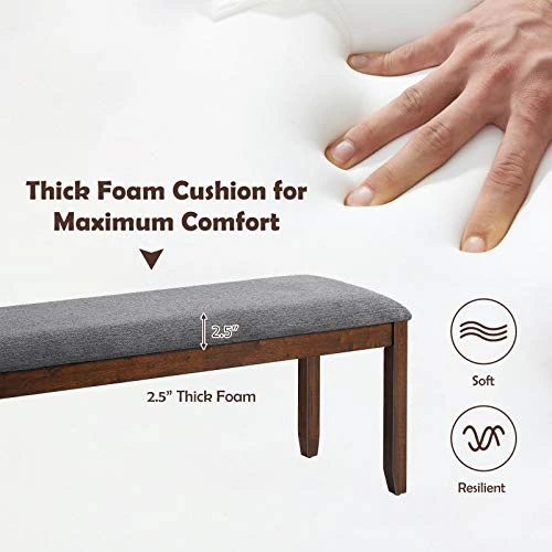 - 【Thick & Comfortable Cushion】This dining bench comes with comes with a comfortable cushion with a thickness of 2.6 inches. With high resilience, the soft cushion provides you excellent comfort while sitting on it.