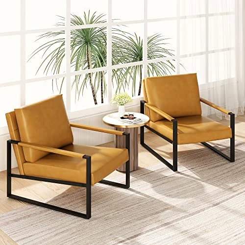 - 【Soft and Comfortable】Oversized PU leather seat and backrest are filled with high-density sponge, which is soft enough for you to enjoy yourself and relax your body after tired work. Metal armrest for added comfort. This bedroom accent chair is wear resistance and wrinkle resistance. easy to clean.