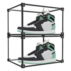 - Easy to assemble, sturdy and stackable. These shoe display cabinets are easy to keep clean. You can protect your favorite shoes and keep them in good shape, which is perfect for displaying your favorite toys, art, collectibles or shoes.