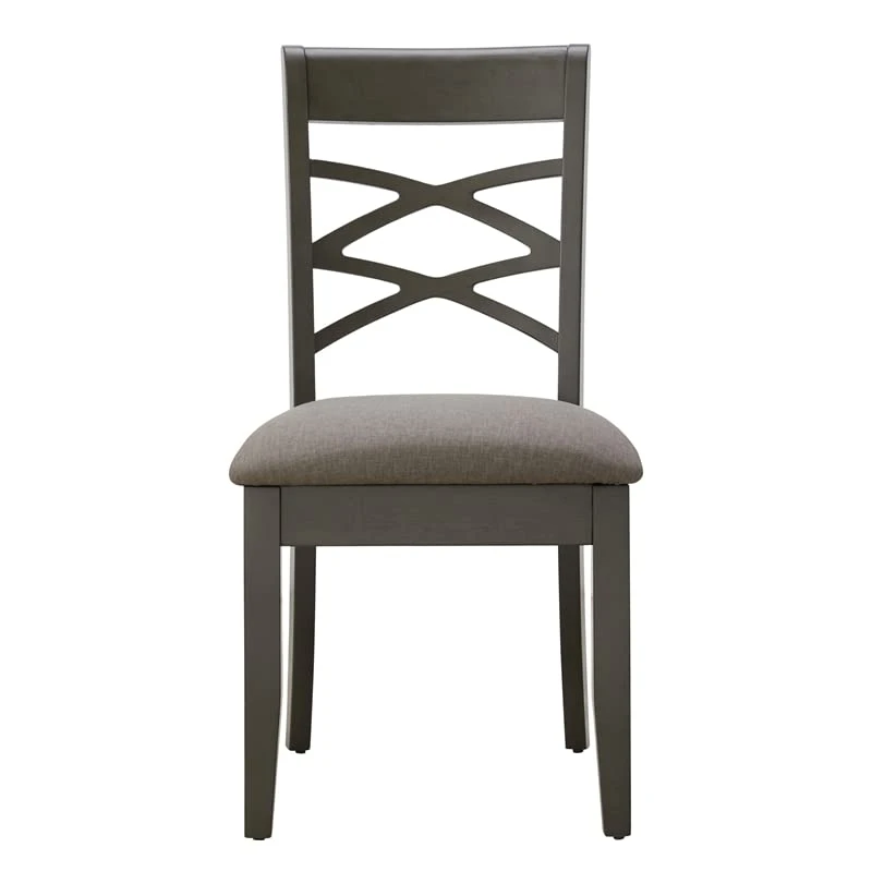 - Graystone finish with Moss Heather, padded and upholstered, linen-look fabric seat