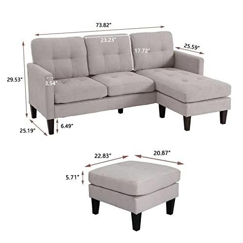 - 【Solid and Stable】 Premium hardwoods are preferred to ensure every part of the sofa is strong and durable. Sturdy solid wood frame with polyester fabric upholstery. The L shape couch has a weight limit of 330 pounds per seat, which is enough to hold your family and friends.