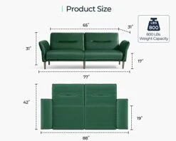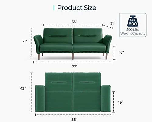 - 【Memory Foam】 Futon sofa bed’s seat cushions use a combination of Bamboo Charcoal Memory Foam that is the material of the premium mattress, high-density foam, and steel springs to offer a cozy feeling and enduring support