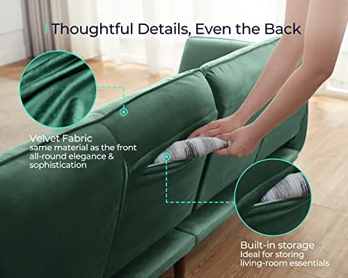 - 【Luxurious Velvet Fabric】 The velvet fabric is both extremely soft and warm, giving the sofa bed couch a shiny look that other materials can not offer. Although very soft this fabric is still durable and easy to clean