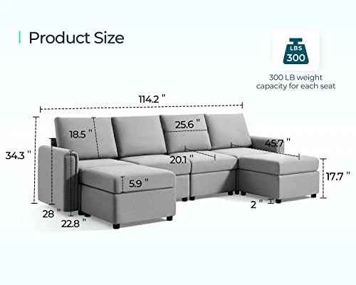 - 【SEVEN Packages】 The maximum capacity of each sofa modular piece is 300lbs. The sofa with storage comes with 7 boxes, which may be delivered at different times. If you have any questions about the tracking numbers or the product, please feel free to contact us. We will respond to you in 24 hours and try our best to solve any problem so as to achieve your 100% satisfaction