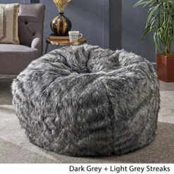 Christopher Knight Home Laraine Furry Glam Dark Light Grey Streak Faux Fur 3 Ft. Bean Bag
