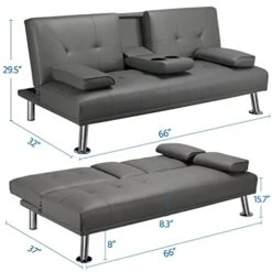 LJMXG Faux Leather Futon Multifunctional Convertible Folding Bed Sofa With Cupholders Pillows