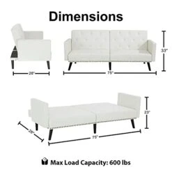 TJLSS Faux Leather Futon Multifunctional Convertible Folding Bed Sofa With Cupholders Pillows