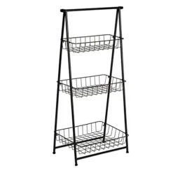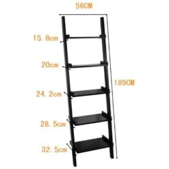Haotian FRG17-SCH, Black Modern 5 Tiers Ladder Shelf Bookcase, Storage Display Shelving Wall Shelf