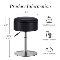 Lexicon Avon Round Tufted Fabric Storage Accent Ottoman, 20″ W, Blue